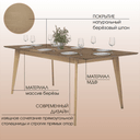 Каркас стола выполнен из массива сибирской берёзы — прочного и долговечного материала, а столешница изготовлена из МДФ, облицованного натуральным шпоном берёзы с выразительной природной текстурой. Её благородный древесный оттенок придаёт интерьеру тепло и гармонию.